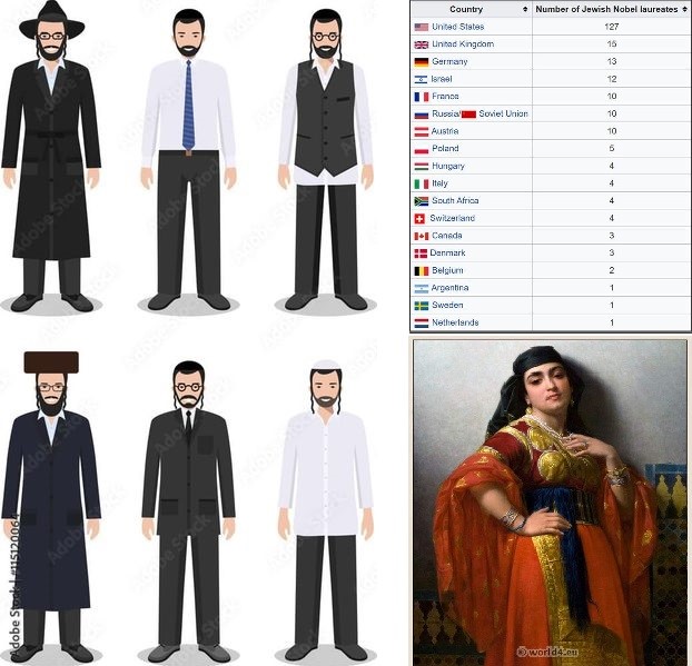 Nếu bàn về trí thông minh của người Do thái thì ta cần hiểu trong hơn 2000 năm vong quốc, cộng đồng người Do Thái chia thành ba phân khu dân tộc lớn tùy theo nơi tổ tiên của họ định cư: người Do Thái Ashkenazim (sinh sống ở Trung và Đông Âu), người Do Thái Sephardim (nguồn gốc ở Bán đảo Iberia, tức Tây Ban Nha và Bồ Đào Nha ngày nay) và người Do Thái Mizrahim (sinh sống ở Trung Đông và Bắc Phi). Trong ba nhóm đó chỉ có người Do Thái Ashkenazim được công nhận có trí thông minh vượt trội. Các nghiên cứu cho thấy người Do Thái Ashkenazi có chỉ số thông minh (IQ) trung bình trong khoảng từ 107 đến 115, và người Do Thái Ashkenazi là một nhóm đã đạt được những thành công trong lĩnh vực trí tuệ vượt xa số lượng của họ. Ít nhất có 214 người Do Thái và những người có một nửa hoặc ba phần tư tổ tiên Do Thái đã được trao giải Nobel, chiếm 22% tổng số cá nhân người nhận giải trên toàn thế giới từ năm 1901 đến năm 2023. Trong số những người phụ nữ đoạt giải Nobel, tỷ lệ người Do Thái đoạt giải là 29%, trong khi người Do Thái chỉ chiếm khoảng 0,2% dân số thế giới. Trong số những người này, hầu hết là người Ashkenazi, chỉ có 4 người gốc Sephardi và 2 người gốc Mizrahim nhưng đều đã di cư sang châu Âu.