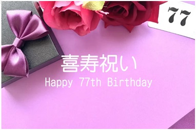 – 77 tuổi: hỷ thọ 喜寿 kiju, tím
