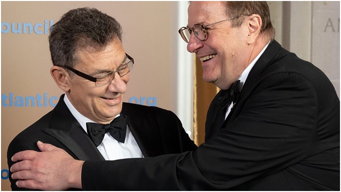 Nhiều đồng nghiệp châu Âu của chúng tôi gọi Hoa Kỳ là nơi ở bên kia bờ sông so với châu Âu, nhưng công việc của Hội đồng Đại Tây Dương đã giúp thu nhỏ kích thước tượng hình của một đại dương và khoảng cách giữa các lục địa, cũng như con người và chính phủ của chúng ta. Vì vậy, tôi muốn dành cho John Rogers – một người bạn thân yêu – và hội đồng quản trị danh tiếng một lời cảm ơn thật lớn, và Fred Kempe cùng đội ngũ nhân viên đáng kinh ngạc. Xin chúc mừng bạn đã đạt được tuổi sáu mươi.