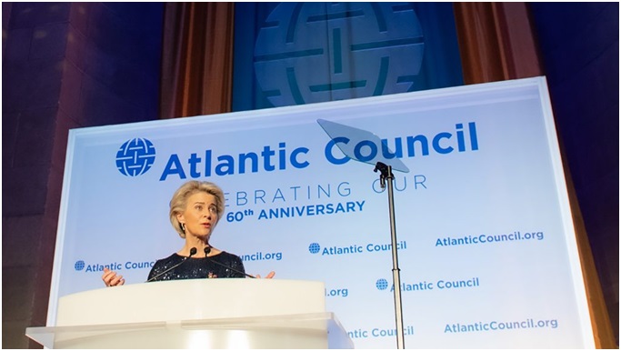 Chủ tịch Ủy ban Châu Âu Ursula von der Leyen đã nhận Giải thưởng Lãnh đạo Xuất sắc của Hội đồng Đại Tây Dương vào ngày 10 tháng 11 năm 2021. Ảnh qua Elman Studio / cho Hội đồng Đại Tây Dương.