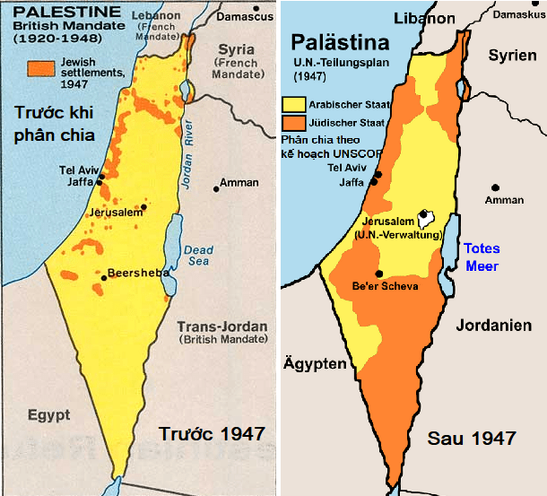 Khu vực dân cư Do Thái trong vùng Palestine (hình bên trái, trước 1947)