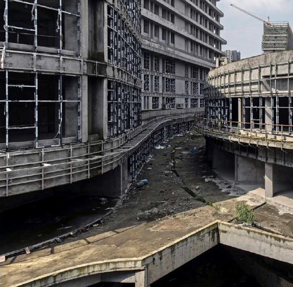 Hãy xem một dự án xây dựng mới ở Ba Châu. „Nơi cư trú của lời chào nồng nhiệt”, như tên gọi khu dân cư phức hợp mới ở thành phố phía bắc Trung Quốc, xem ra kém hấp dẫn hơn so với cái tên gợi ý. Ba khối vỏ bê tông cao khoảng 20 tầng đang mục nát, giấy chắn rách bươm bay phần phật ra khỏi các khung cửa sổ, cần cẩu thi công đứng im. Chỉ có phòng trưng bày thì được trang trí.
