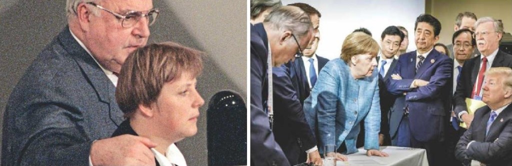 Bà nói rằng bà đã lật lại những trang về thân thế của mình. Ví dụ, trong cuốn sách »Nữ Thủ tướng và thời gian của bà« của Ralph Bollmann, đã đúc kết cân xứng: »Angela Merkel nhậm chức với tư cách là thủ tướng của sự thay đổi, bà ấy đã trở thành thủ tướng của sự bảo thủ. Một cách chậm rãi, đau đớn, bà ấy nhận ra rằng người phương Tây chưa thích nghi với cái mới như thế nào.”