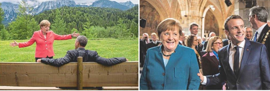 “Có cái gì đó trên khóe miệng của bà kìa,” bà Beate Baumann nói. “Từ nãy giờ rồi.” Nữ thủ tướng lấy tay lau đi như một đứa trẻ. Còn Scholz và Macron thì sao? Còn Pháp và Đức?