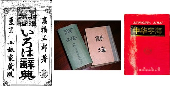 Từ từ điển được phổ biến để đặt tên cho các sách tra nghĩa chữ từ thời Minh Trị như sau.