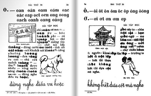 - Sách tập đọc và tập viết cho lớp Đồng Ấu gồm 34 bài đầu dạy phân biệt bảng chữ cái và đánh vần (trang 5~38, 34 trang), 55 bài sau là tập đọc vỡ lòng (trang 39~93, 55 trang, không tính mục lục).