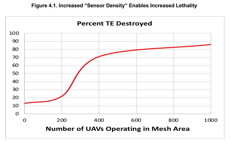 Với sự hỗ trợ của vài trăm UAV – Máy bay không người lái (drones) – tỷ lệ lực lượng có thể bị tiêu diệt bằng một nghìn tên lửa tăng lên rõ rệt.RAND