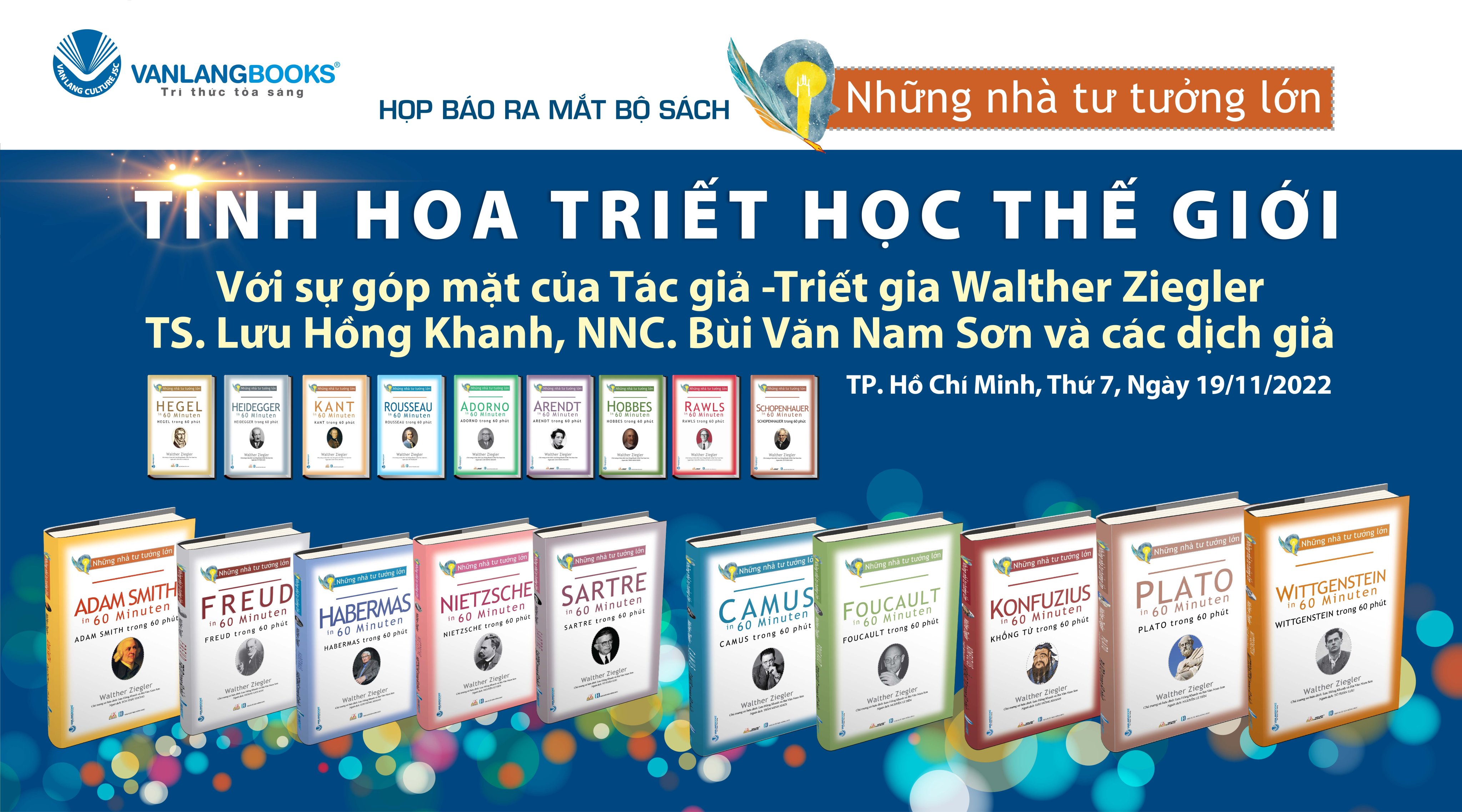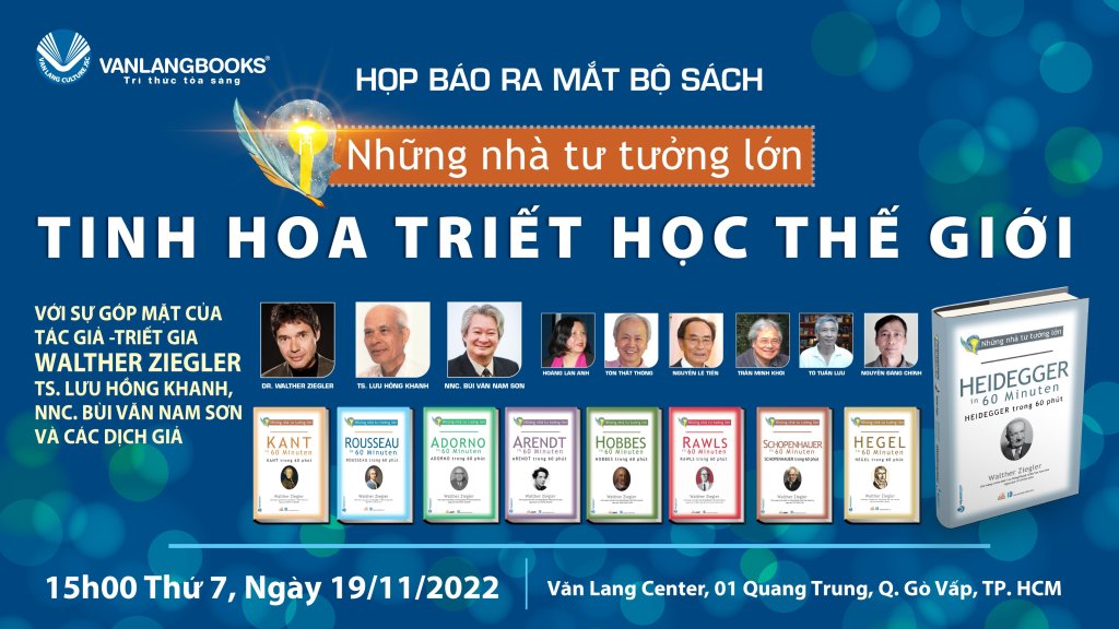 DĐKP giới thiệu: Hôm 19.11.2022, Văn Lang Books đã tổ chức rất thành công buổi họp báo ra mắt bộ sách triết học „Những nhà tư tưởng lớn“ bao gồm 19 tác phẩm. Hiếm khi ở Việt Nam có một kiểu họp báo tương tự: vừa trực diện tại hội trường, vừa trực tuyến chạy song song, lại là buổi họp báo song ngữ có người dịch tại chỗ, tạo nên một buổi giao lưu văn hóa quốc tế đầy ý nghĩa, một cơ hội trao đổi trực tiếp giữa tác giả, dịch giả và độc giả. Tổ chức họp báo theo dạng đó không dễ dàng, nhưng Văn Lang Books đã tổ chức thành công rực rỡ, mang lại một „hào khí triết học“ và nguồn cảm hứng cho mọi thành viên tham dự, từ cử tọa đến các dịch giả và tác giả, Dr. Ziegler. DĐKP hân hạnh giới thiệu hai bài phát biểu, một của người chủ trương dự án dịch thuật, TS triết học Lưu Hồng Khanh, và một của chính tác giả bộ sách, TS triết học Walther Ziegler. Dù chỉ là hai bài chào mừng, nhưng cũng là hai tiểu luận hàm chứa những ưu tư triết học cho hiện tại và tương lai.