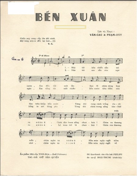 Sau khi sáng tác bài Bến Xuân, Văn Cao đưa cho người bạn du ca Phạm Duy xem, lúc ấy chưa phải là nhạc sĩ sáng tác, nhưng rất am hiểu âm luật và hồn thơ lai láng, nên đã góp ý để Văn Cao chỉnh sửa thành phiên bản hôm nay. Như vậy, Bến Xuân đã được hai cây đại thụ âm nhạc Văn Cao và Phạm Duy sáng tác thành một tình khúc vượt thời gian, và sớm được thánh hoá qua một giọng ca huyền thoại miền Nam, ca sĩ Mai Hương, nữ hoàng của tình ca tiền chiến trong thập niên 1960. Trong khi nhạc Văn Cao còn bị cấm phổ biến ở miền Bắc, thì chính Mai Hương đã đưa bài Bến Xuân lên đỉnh cao của dòng nhạc tình ở miền Nam. Giờ đây cả ba người đã khuất núi, và nếu còn sống thì cả ba cũng xấp xỉ tuổi 100 hoặc 90.