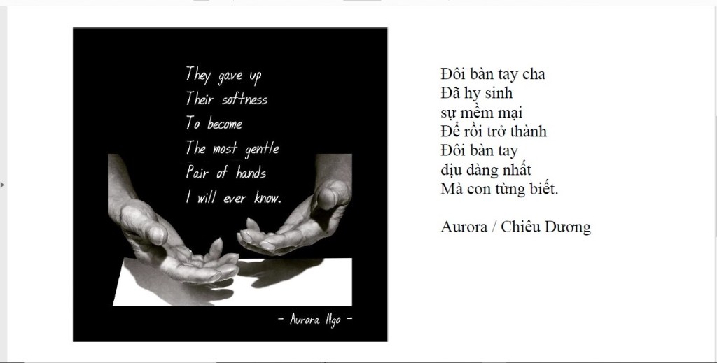 Hôm nay, tôi nhớ lại câu nói trong radio hôm qua, tìm Google, nào ngờ thấy nó nguyên văn, xin gửi lại cho các bạn cùng đọc (Anhang). Tôi cũng gửi thư này cho Nhi và Ngân. Sau khi nghe câu nói trên Ngân lấy làm tiếc sao tôi không nói cho mọi người cùng nghe “về anh Dũng”. Một lần nữa gửi lời chúc an lành đến Ngân và Nhi.